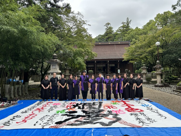 川西市の中学校の部活動が地域クラブへ完全移行してから、初の書道パフォーマンスです。