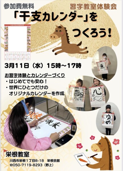 礼文庵栄根教室にて【干支カレンダーを作ろう!】のイベントを開催します!