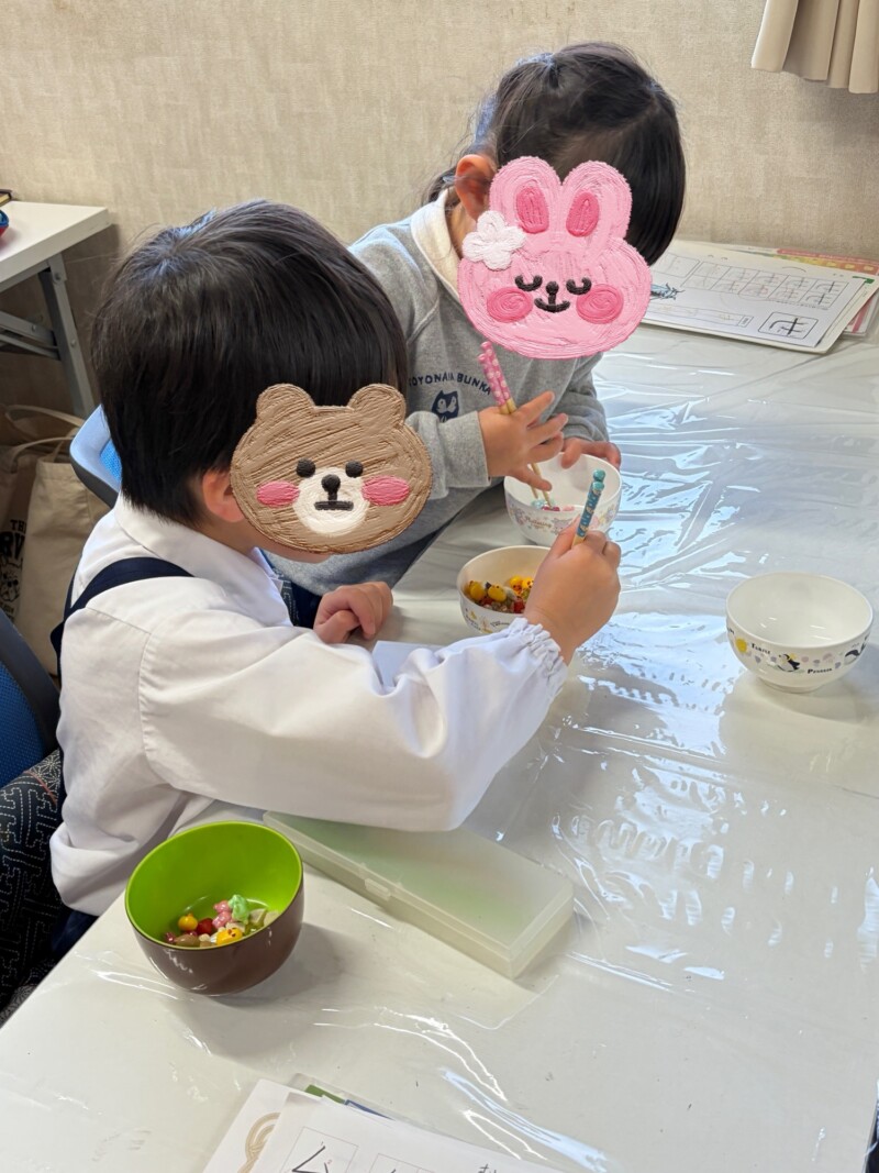 年長さんは毛筆のお稽古が始まりました。ドキドキワクワク。とっても上手に書けましたよ♪
